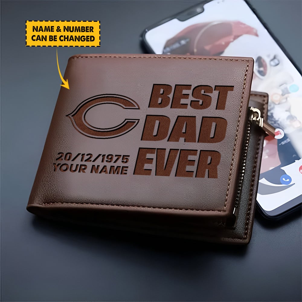 Chicago Bears Best Dad Ever Men Wallet Cutsom Any Name And Date Gift For Fans