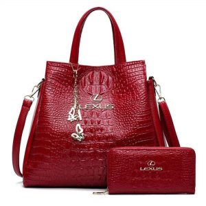 LEXUS Crocodile Leather Handbag With Free Matching Wallet